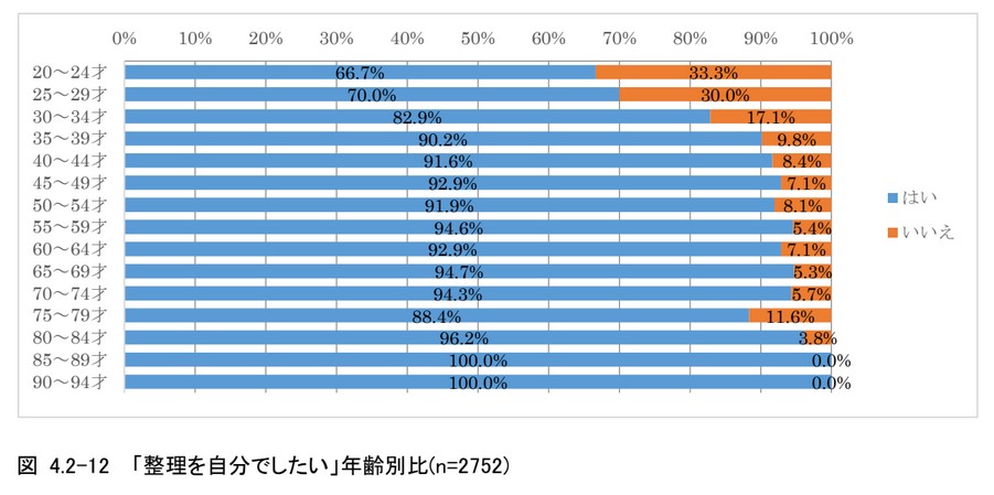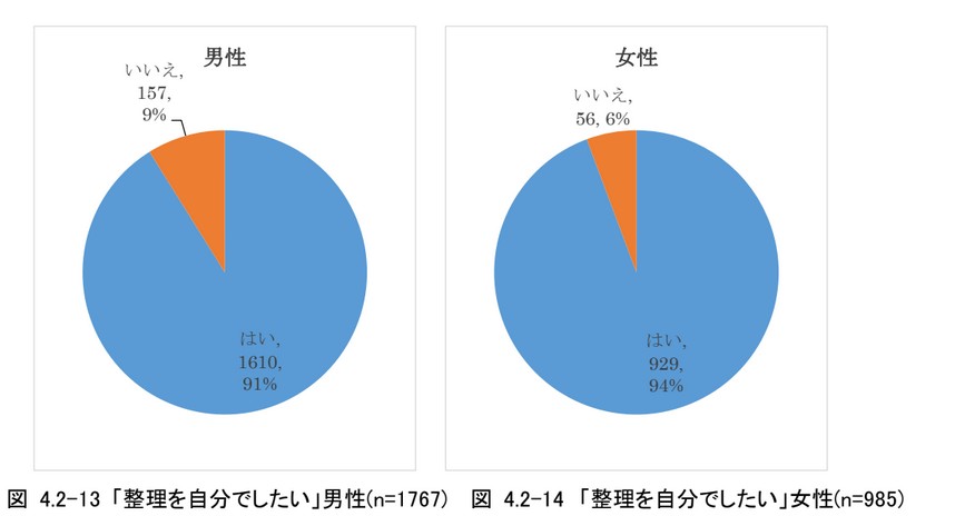 自分のモノは自分で整理したいと思っている人がおよそ9割と非常に多いことが分かる(図4.2-10、図4.2-11)。