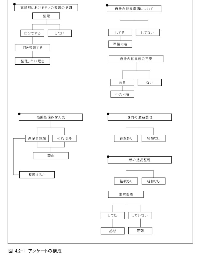 高齢者になった時に、自分自身はモノを整理するか、また具体的に何を整理するかを調査する(図4.2-1)。また自身の死後についての設問も用意した。